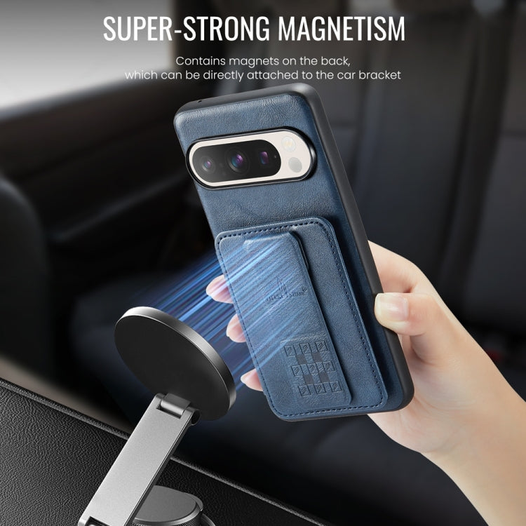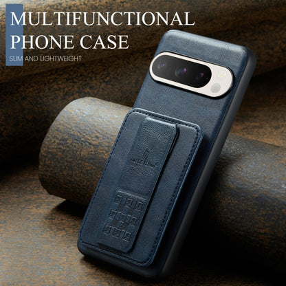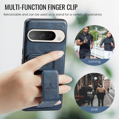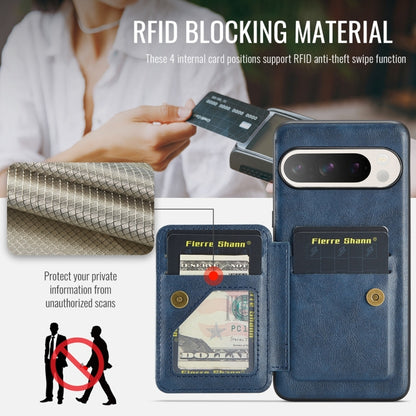 For Google Pixel 9 Pro XL Fierre Shann Oil Wax Cow Leather Card Holder Back Phone Case(Blue)