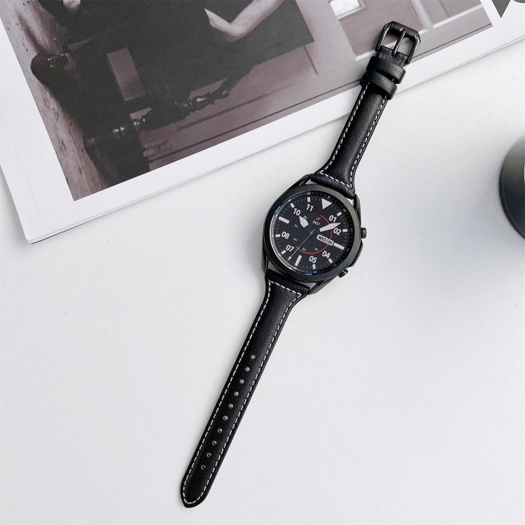 20mm Sewing Plain Weave Small Waist Leather Watch Band(Black)