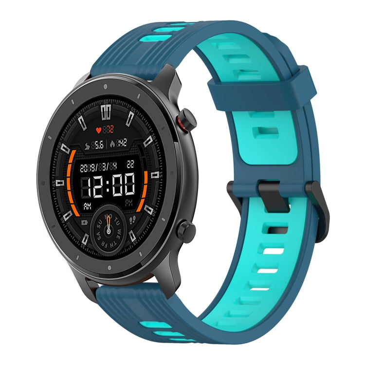 For Amazfit GTR 47mm 22mm Vertical Pattern Two-Color Silicone Watch Band(Blue+Water Duck)