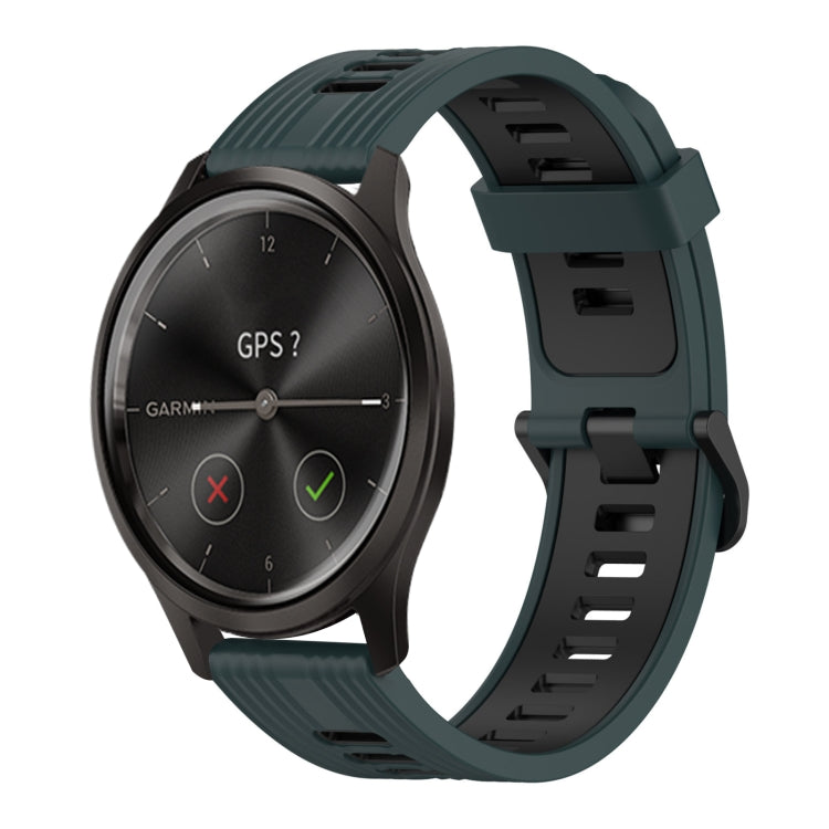 Compatible with Garmin Move Style 20mm Vertical Pattern Two-Color Silicone Watch Band(Olive Green + Black)