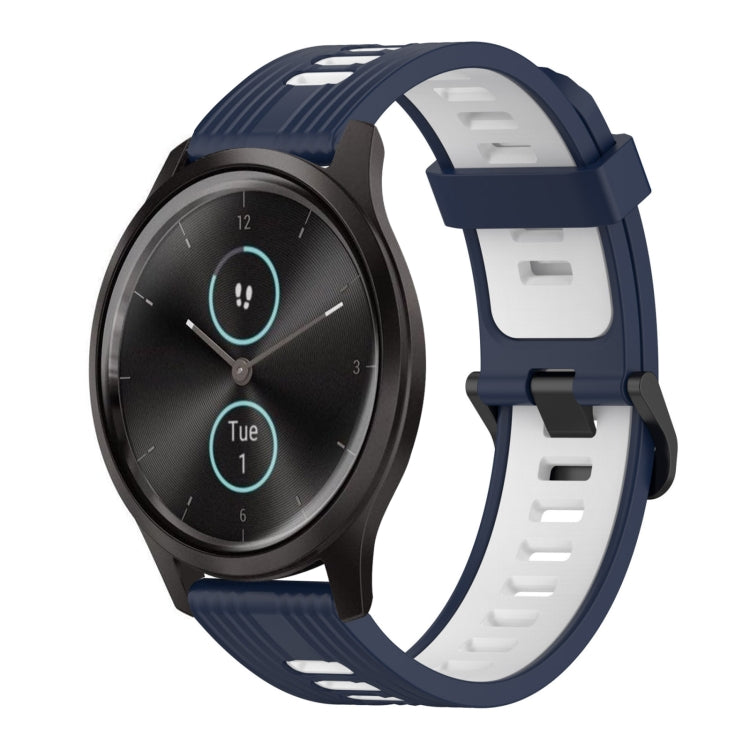 Compatible with Garmin Vivomove 20mm Vertical Pattern Two-Color Silicone Watch Band(Dark Blue+White)