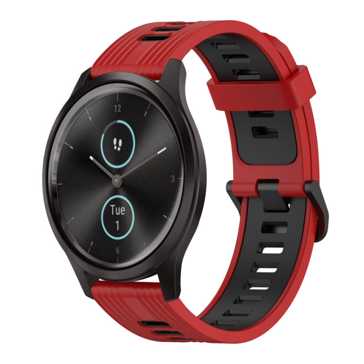 Compatible with Garmin Vivomove 20mm Vertical Pattern Two-Color Silicone Watch Band(Red+Black)