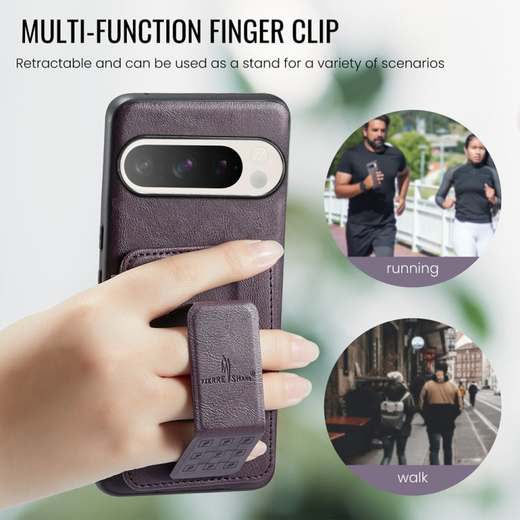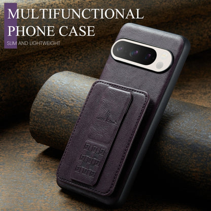 For Google Pixel 9 / 9 Pro Fierre Shann Oil Wax Cow Leather Card Holder Back Phone Case(Purple)