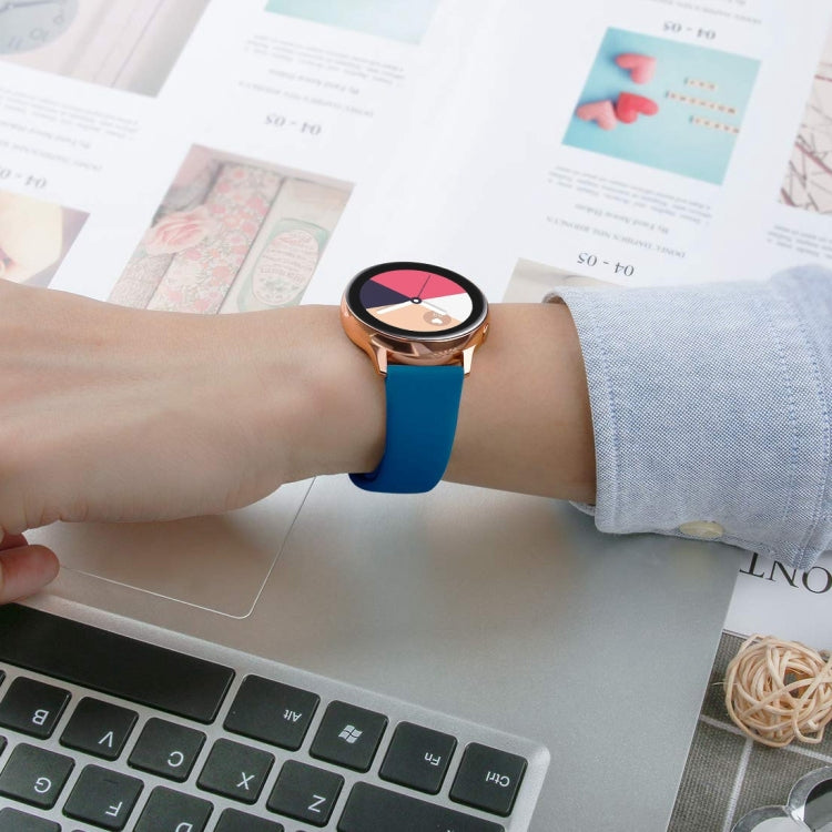 For Samsung Galaxy Watch Active2 Bluetooth Version 40mm Smart Watch Solid Color Silicone Watch Band, Size:S (Cyan)