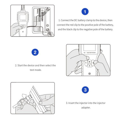 4. Powered by a DC jack power adapter, the continuous working mode can identify the quality of the fuel injector when the engine is turned off. This instrument can be used with any fuel pressure tester